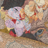 Inlaid maps, book pages, ink, on panel