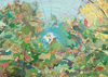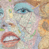 Inlaid maps, acrylic, on panel