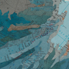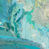 Inlaid maps, acrylic on panel.