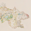 Maps, sighting targets, ink, dye, on panel